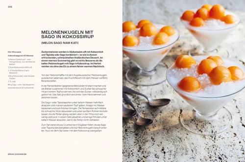 - Süße Leckereien: Kürbis In Kokossirup; Klebreis mit Mango; Melonenkugeln mit Sago In Kokossirup; Mini-Kokospfannkuchen