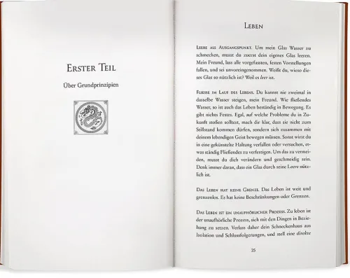 Die “ Geheimnisse seine Erfolgs“ sind eine Fundgrube an Inspiration für jeden, der sich weiterentwickeln will. Denn nach Bruce Lee zeichnet es einen guten Lehrer aus, einem Schüler zu zeigen, wie er die Wahrheit in sich selbst finden kann.
