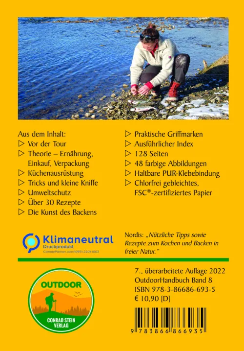 Dieses OutdoorHandbuch vermittelt dem Leser Grundlagenwissen über das Kochen auf Kanu-, Rad-, und Wandertouren. Er wird mit den wichtigsten Nährwerten und ihrem Vorkommen in gängigen Lebensmitteln bekannt gemacht. Nicola Boll gibt nützliche Tipps, welche Nahrungsmittel für unterwegs besonders geeignet sind und wie sie sinnvoll verpackt werden können. Des Weiteren stellt sie eine Campingküche mit dem notwendigen Zubehör vor. Beim Lesen der Rezepte wird dem Trekker das Wasser im Munde zusammenlaufen, und er wird vielleicht sogar zu neuen, eigenen Gerichten inspiriert. Völlig neu dürfte ihm die Idee sein, draußen zu backen. Dazu gibt das Buch viele Anregungen und informiert über verschiedene geeignete Öfen.