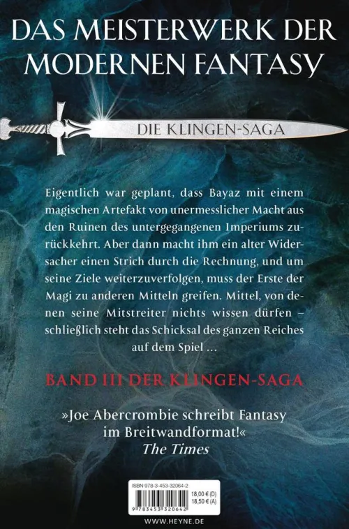 Erneut muss Logen Neunfinger in die Schlacht ziehen, denn überall im Land herrscht Krieg, der König liegt im Sterben, und das Reich versinkt im Chaos. Das weiß auch Großinquisitor Glokta, und mit List und Tücke versucht er den größtmöglichen Vorteil für sich herauszuschlagen. Nur der erste Magier Bayaz ahnt, was bei all dem wirklich auf dem Spiel steht: das Schicksal ihrer Welt. Doch um diese zu retten, muss er die obersten Gesetze der Magie brechen . . .