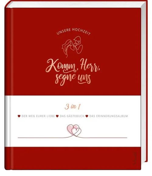 Der besondere Tag der eigenen Hochzeit sollte für immer in Erinnerung bleiben. Dieses christliche Geschenkalbum ist ein Novum, denn es begleitet gleich dreifach: Auf liebevoll gestalteten Doppelseiten ist Platz für die persönliche Liebesgeschichte des Paares vor der Eheschließung, danach liegt es während der Feier als Gästebuch für gute Wünsche oder interessante und lustige Kommentare aus. Zu guter Letzt schenkt es nach der Hochzeit Anregungen und freie Seiten für die Gestaltung als Erinnerungsalbum. Eine Geschenkidee, die rundum glücklich macht. (mit Artpaper und Strukturcellophanierung, mit Banderole)- 3 in 1: Liebesgeschichte-Gästebuch-Erinnerungsalbum- hochwertige Ausstattung und liebevolles, modernes Design- mit viel Platz und Ideen für die ganz persönlichen Hochzeitserinnerungen