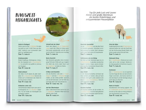 Highlight-Listen für Kinder, E-Biker, Schlemmer und Ruhesuchende helfen bei der Tourenauswahl. Dank Eventkalender planst du deine Route zur besten Zeit und mit Radcheck und Packliste geht es gut gerüstet ins Heimat- oder Urlaubsabenteuer. Bei jeder Tour finden sich Einkehrtipps, Anreiseinfos, Höhenprofil und Tourenkarte.
