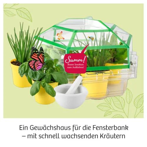 – Mit den bunten Insekten-Stickern lässt sich das Gewächshaus individuell verzieren, sodass es zum echten Hingucker wird, wenn Zitronenbasilikum, Schnittlauch und Pfefferminze zu sprießen beginnen
