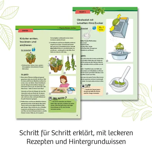 – Die altersgerechte Anleitung erklärt Kindern ab 6 Jahren Schritt für Schritt, was zu tun ist: von der Anzucht der schnellwachsenden Kräuter, über die Pflege bis hin zur Ernte