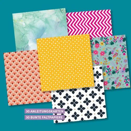 - 30 bunte Origami-Papiere in hochwertigen Designs