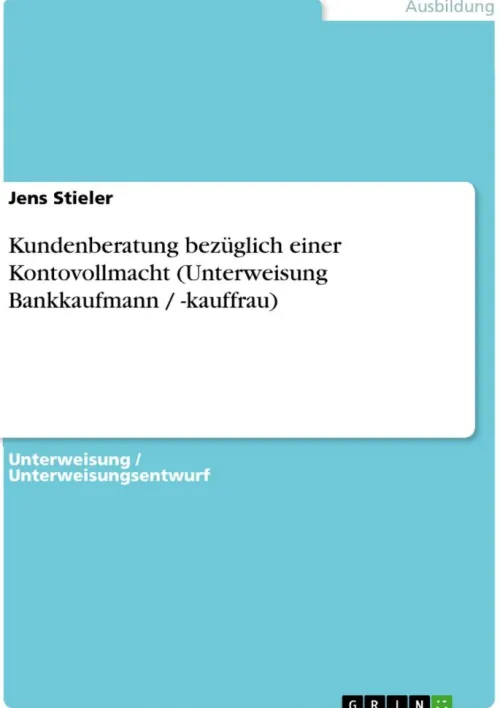 Kundenberatung bezüglich einer Kontovollmacht (Unterweisung Bankkaufmann / -kauffrau)*GRIN Verlag Hot