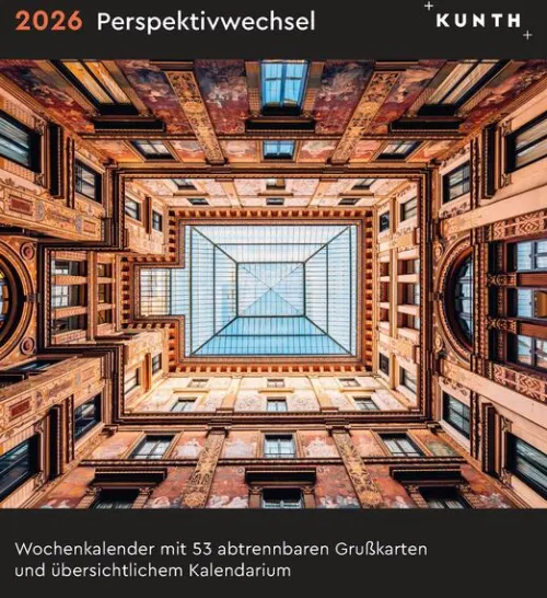 Woche um Woche begleitet dieser KUNTH Postkartenkalender „Perspektivwechsel“ 2026 mit atemberaubenden Bildern durch das Jahr – auf dem Schreibtisch oder als Hingucker an der Wand. Die Postkarten zum Herauslösen können dann als Gruß versendet werden.