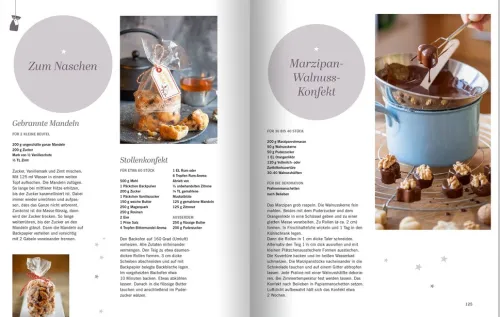 - Abwechslungsreiche Rezepte: Von knusprigen Plätzchen über klassische Festtagsgerichte wie Gänsebraten bis hin zu kleinen Geschenken aus der Küche.