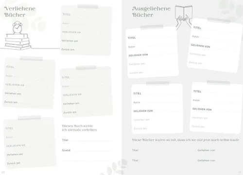 - Kreative Extra-Seiten für Lieblingsbücher und Lieblingszitate, Lesekreise, Lieblingsnacks- und getränke beim Lesen und vieles mehr