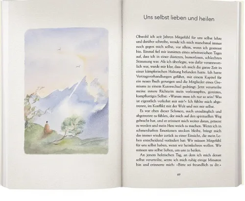 “ Inmitten unseres tiefsten emotionalen Leidens ist Selbstmitgefühl der Weg, der uns nach Hause führt“ , schreibt Brach. Was für eine Freude zu sehen, wie unser strahlendes Bewusstsein durch jede und jeden von uns scheint. Wenn wir diese geheime Schönheit sehen, verlieben wir uns in alles Leben.