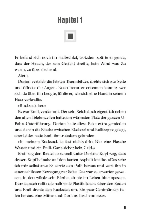 Seit Dorian von zu Hause abgehauen ist, schlägt er sich auf der Straße durch – und das eigentlich ganz gut. Als er jedoch eines Morgens neben einem toten Obdachlosen aufwacht, gerät Dorian in Panik, weil er sich an nichts erinnert: Hat er selbst etwas mit dem Tod des Mannes zu tun?