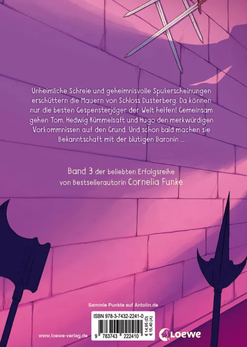 Unheimliche Schreie und geheimnisvolle Spukerscheinungen erschüttern die Mauern von Schloss Dusterberg. Da können nur die besten Gespensterjäger der Welt helfen! Gemeinsam gehen Tom, Hedwig Kümmelsaft und Hugo den merkwürdigen Vorkommnissen auf den Grund. Und schon bald machen sie Bekanntschaft mit der blutigen Baronin . . .