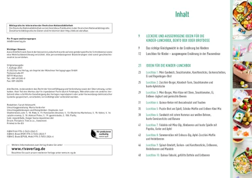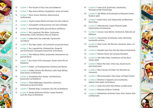 Sie möchten Ihrem Kind für den Kindergarten oder die Schule eine abwechslungsreiche Verpflegung mitgeben, aber Ihnen fehlt die Inspiration? Dieses Buch zeigt Ihnen, wie Sie gesunde und vollwertige Leckereien ganz einfach selbst zubereiten. Und das Beste daran: Die vielseitigen Lunchbox-Ideen für Kids sehen auch noch farbenfroh und ansprechend aus und überzeugen so selbst kleine Obst- und Gemüse-Muffel. Mit den über 50 kreativen Anregungen und Vorschlägen zum Anrichten sind das langweilige Pausenbrot und der ungesunde Snack vom Schulkiosk Geschichte.
