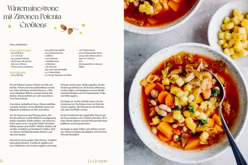 Das Fest der Liebe ist gleichzeitig auch das Fest der kulinarischen Köstlichkeiten. Lasst euch inspirieren von traditionellen Rezepten wie Festtagsente oder Lachs mit Ofenkartoffeln und neuinterpretierten Klassikern, darunter Winterminestrone und Kürbisravioli. Dazu sorgen liebevolle Geschenkideen für kreative Überraschungen unter dem Weihnachtsbaum. Zauberhafte Gedichte, bekannte Lieder und Geschichten stimmen euch auf die schönste Zeit des Jahres ein.