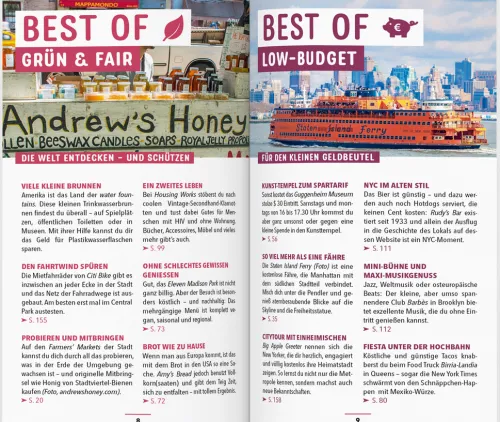 In New York brodelt Tag und Nacht das Leben. Damit du kein Must-see verpasst, macht dein MARCO POLO Reiseführer New York die Planung deines Traumurlaubs maximal einfach. Hier findest du alles Wissenswerte zur Stadt, Tipps zu Hotels und Restaurants, Infos zur Anreise und zum ÖPNV. Mit den übersichtlichen Stadtplänen findest du dich im Straßennetz des Big Apple schnell zurecht und stellst dir im Handumdrehen deine Lieblingstouren durch die Megacity zusammen.