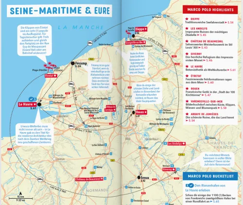 Mit deinem MARCO POLO Reiseführer bist du ohne große Vorbereitung bestens für jedes Abenteuer gerüstet. Ob du den Erlebnistouren entlang der Alabasterküste folgst, auf eigene Faust durch Bilderbuch-Fachwerkdörfer schlenderst oder das Geburtshaus von Christian Dior besuchst – dein MARCO POLO Reiseführer Normandie gibt dir die besten Tipps und lässt dich nie die Orientierung verlieren.