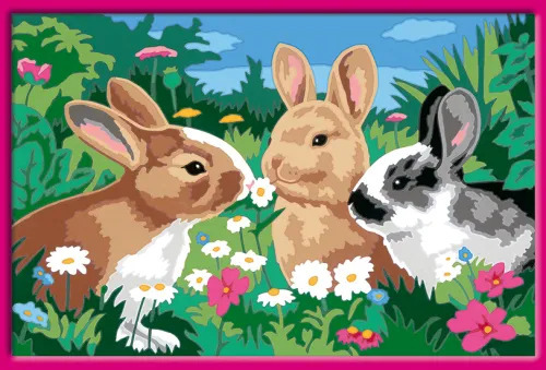 Dank der farbigen Motivlinien, können die Kinder das ganze Motiv Putzige Häschen und die Farben schneller erkennen.
