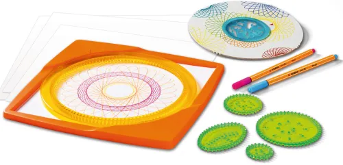 Mit den Spiral-Designer von Ravensburger zaubern Kinder ab 6 Jahren wunderschöne Spiral-Bilder. Mit den unterschiedlichen Farben und Mustern unzählige Kombinationen ausprobieren. Einfach einen Bogen Papier zwischen Malrahmen und Schablonen legen und los geht es. Das gesamte Malset enthält 1x Malrahmen, 1x Zahnkranz, 4x Zahnräder, 1x Rahmen für die Mandala Schablone, 1x Mandala Schablone, 10x Bogen Papier, 2x Filzstifte, 1x Anleitung. Mit dem Spiral-Designer wird jedes Kind zum echten Künstler.