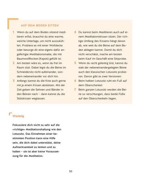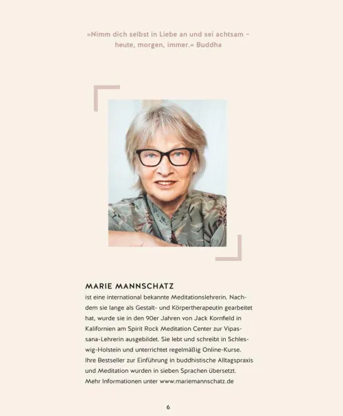 Kopf voll, Herz schwer? Meditieren hilft – und ist hochwirksam! Marie Mannschatz, Meditationslehrerin und Schülerin von Buddhismus-Ikone Jack Kornfield, zeigt in ihrem nun aktualisierten Bestseller, dass wirklich jeder meditieren kann. Leichte alltagspraktische Achtsamkeits-Sessions, Atem- und Metta-Übungen leiten uns Schritt für Schritt dazu an, die besondere Wirksamkeit dieser Praxis selbst zu erleben. Egal ob wir belastendes Gedankenchaos stoppen, Stress, Ängste und Selbstzweifel loslassen oder endlich zur Ruhe kommen wollen: Meditieren ist der Königsweg, um den Geist zu beruhigen und uns mit Selbstliebe zu begegnen. Als besonderes Extra bietet das Buch fünf geführte Einstiegsmeditationen zum Streamen.