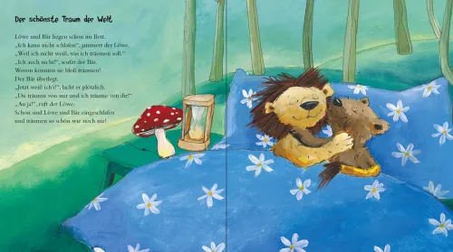 Was für ein gemütlicher Abend! Langsam wird es dunkel und Frau Nacht knipst das Mondlicht an. Löwe und Bär schmiegen sich eng aneinander und Mona schaut noch einmal nach ihrem kleinen Hasen Mäxchen. Mit dem Schlummersand des Sandmännchens können nun die schönsten Träume herbeifliegen.