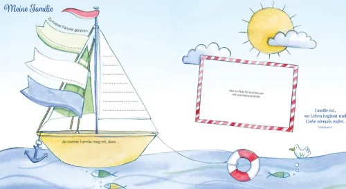 – Das Buch ist auch als kleines Fotoalbum mit zusätzlichen Eintragemöglichkeiten nutzbar.