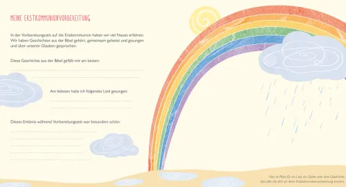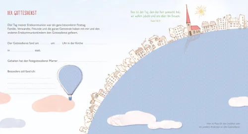 Die Erstkommunion ist ein großer Tag im Leben der Kinder und Familien. Dieses erlesen ausgestattete Album lässt das Fest mit seiner schlichten Eleganz zu einer unvergesslichen Erinnerung werden. Die zauberhaft-poetischen Illustrationen bieten viele Anregungen zum Eintragen und Platz zum Bebildern, mit liebevoll gestalteten Gästebuchseiten. So wird dieses Fest unvergesslich!