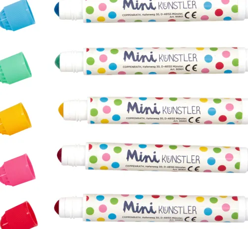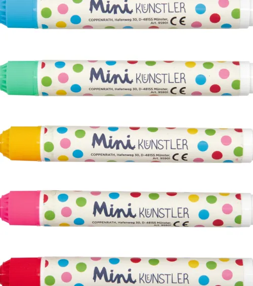 Mit diesen Dotmarkern aus der beliebten Reihe „Mini-Künstler“ von Coppenrath wird kreatives Gestalten kinderleicht! Im Handumdrehen zaubern Kindergartenkinder lustige Punkte aufs Papier – ganz ohne Schmiererei und farbige Finger. 5 fröhliche Farben (Gelb, Rosa, Rot, Grün und Blau) und 3 lustige Bilder laden zum sofortigen Ausprobieren ein. Ideal für kreative Auszeiten, in denen die Kinder ihrer Fantasie freien Lauf lassen können!