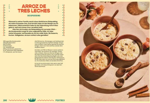 Über 80 Rezepte – von traditionellen Gerichten bis zu Streetfood – bieten eine bunte Palette an authentischen Geschmackserlebnissen: Tostadas mit Pulled Pork, Huevos rancheros, Kartoffel-Chorizo-Tacos, mit Käse gefüllte Jalapeños, Kaktusfeigensalat, Erdnuss-Mole, Schokoladen-Tamales, erfrischende Horchata und aromatische Salsas wie Pico de gallo, Guacamole oder Chamoy.