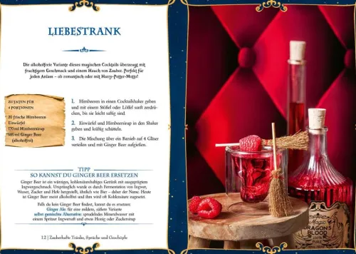 Geheimnisvolle Getränke für Groß und Klein! Dieses einzigartige Buch gibt Einblick in 40 geheime Rezepturen aus der magischen Welt von Harry Potter. Mithilfe einfacher Anleitungen und stimmungsvoller Rezeptfotos erfährt man, wie die liebsten Drinks und Zaubertränke von Harry, Ron, Hermine und Co. auch ohne fantastische Zutaten wie Drachenblut, Phönixtränen oder Einhornhaar gelingen können. Ob süße Elixiere aus dem Honigtopf, leckere Drinks aus den Wirtshäusern von Hogsmeade, selbst gebraute Tinkturen oder lustige und kreative Party-Rezeptideen – hier ist für jeden festlichen Anlass oder den gemütlichen Feierabend zu Hause das Richtige dabei, ganz ohne Alkohol. Jeder Schluck dieser köstlichen Mocktails verleiht besonderen Momenten mit Freund*innen und Familie einen zusätzlichen Hauch Magie.