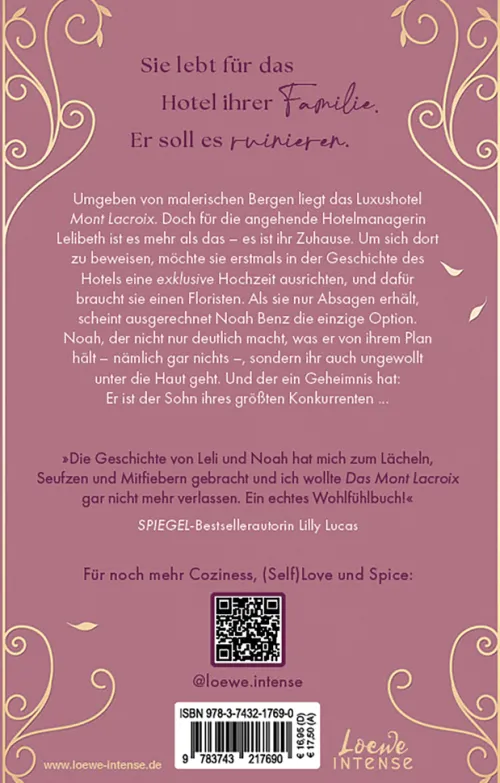 Umgeben von malerischen Bergen liegt das Luxushotel Mont Lacroix. Doch für die angehende Hotelmanagerin Lelibeth ist es mehr als das – es ist ihr Zuhause. Um sich dort zu beweisen, möchte sie erstmals in der Geschichte des Hotels eine exklusive Hochzeit ausrichten, und dafür braucht sie einen Floristen. Als sie nur Absagen erhält, scheint ausgerechnet Noah Benz die einzige Option. Noah, der nicht nur deutlich macht, was er von ihrem Plan hält – nämlich gar nichts -, sondern ihr auch ungewollt viel zu sehr unter die Haut geht. Und der ein Geheimnis hat: Er ist der Sohn ihres größten Konkurrenten . . .