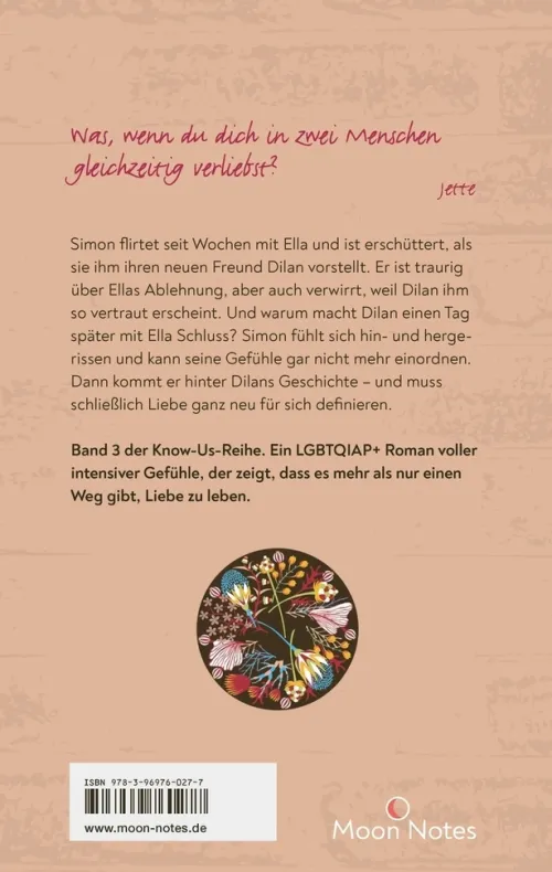 Als Simon schließlich Dilans Geheimnis aufdeckt, steht er vor einer Zerreißprobe, die ihn alles, was er über Liebe zu wissen glaubte, in Frage stellen lässt. Die Entdeckung wirft nicht nur seine Gefühle für Ella und Dilan durcheinander, sondern konfrontiert ihn auch mit tiefen Wahrheiten über sich selbst und die Natur der Liebe. Diese Dreiecksgeschichte, gewürzt mit Elementen der Selbstfindung, des Vertrauens und der Akzeptanz, verspricht eine emotionale Achterbahnfahrt. „Know Our Love“ erkundet die Vielschichtigkeit menschlicher Beziehungen und die Bedeutung von echtem Vertrauen und tiefer Verbundenheit, was den Roman zu einem unvergesslichen Leseerlebnis innerhalb der beliebten „Know us“-Reihe macht.