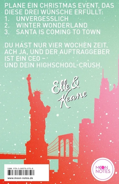 Elle kann ihr Pech kaum fassen: Trotz tadelloser Planung verspätet sie sich im verschneiten New York zum Vorstellungsgespräch. Damit kann sie ihren Traumjob bei einer Top-Eventagentur vergessen. Doch ausgerechnet Keane, Elles geplatztes Abschlussball-Date, ist mittlerweile CEO der Agentur. Er unterbreitet ihr ein Angebot: Sie hat einen Monat Zeit, um als Eventplanerin die Christmas-Party für einen besonderen Kunden zu organisieren. Wenn ihr das gelingt, bekommt sie die Leitung einer Abteilung in Keanes Agentur. Was Elle nicht ahnt: Bei dem Kunden handelt es sich um niemand anderen als den smarten CEO selbst. Was steckt hinter seinem Auftrag? Und weshalb bringt nicht nur die heiße Schokolade während der Partyvorbereitungen, sondern auch seine Nähe Elles Herz zum Schmelzen?
