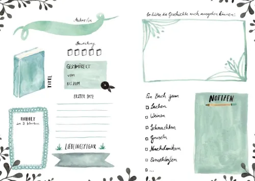 - Bullet Diary mit Wunschlisten, Verleih-Listen, Schwarzen Listen der abgebrochenen Bücher, Listen für schöne Wörter, letzte Sätze und vielem mehr.