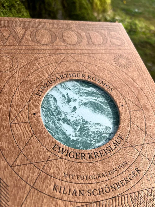 THE WOODS fühlt sich selbst an wie ein Baum:mit besonderem Covermaterial, das Holz imitiert, mit nachhaltigem Naturpapier und Astloch-Coverstanze samt Überraschungseffekt