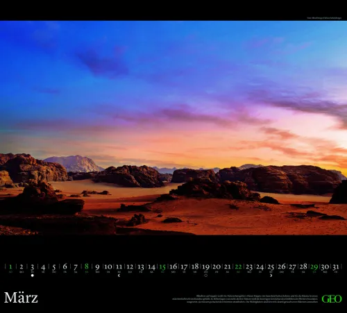 Monatsblätter mit faszinierenden GEO-Reisefotografien weltweiter Traumziele