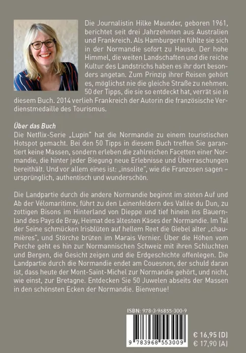 Die Netflix-Serie „Lupin“ hat die Normandie zu einem touristischen Hotspot gemacht. Bei den 50 Tipps in diesem Buch treffen Sie garantiert keine Massen, sondern erleben die zahlreichen Facetten einer Normandie, die hinter jeder Biegung neue Erlebnisse und Überraschungen bereithält. Und vor allem eines ist: „insolite“, wie die Franzosen sagen – ursprünglich, authentisch und wunderschön. Die Landpartie durch die andere Normandie beginnt im steten Auf und Ab der Vélomaritime, führt zu den Leinenfeldern des Vallée du Dun, zu zottigen Bisons im Hinterland von Dieppe und tief hinein ins Bauernland des Pays de Bray, Heimat des ältesten Käses der Normandie. Im Tal der Seine schmücken Irisblüten auf hellem Reet die Giebel alter „chaumières“, und Störche brüten im Marais Vernier. Über die Höhen vom Perche geht es hin zur Normannischen Schweiz mit ihren Schluchten und Bergen, die Gesicht zeigen und die Erdgeschichte offenlegen. Die Landpartie durch die Normandie endet am Couesnon, der schuld daran ist, dass heute der Mont-Saint-Michel zur Normandie gehört, und nicht, wie einst, zur Bretagne. Entdecken Sie 50 Juwelen abseits der Massen in den schönsten Ecken der Normandie. Bienvenue!