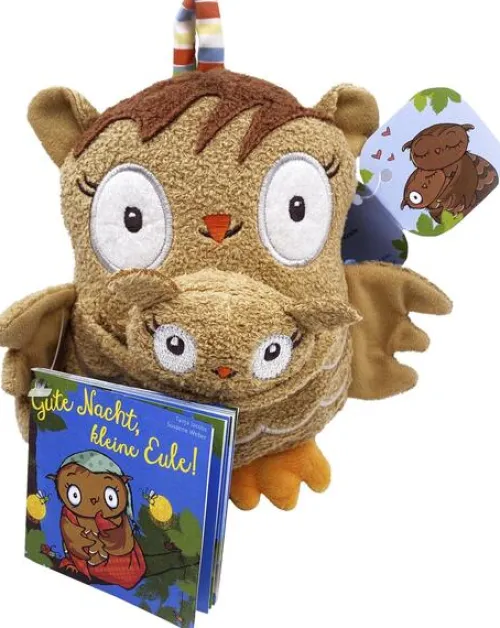 - Mama Eule und kleine Eule als Plüschfiguren inkl. Vorlesegeschichte (Buchformat 7, 5 x 7, 5 cm, 16 Seiten).