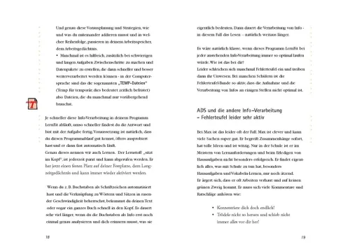 Gezielte Hilfen für das Lernen in der Schule und Zuhause, besonders bei Kindern mit ADS. Das Buch ist anschaulich für Kinder in der 5. bis 10. Klasse geschrieben und bietet zahlreiche konkrete Tipps und Ratschläge.