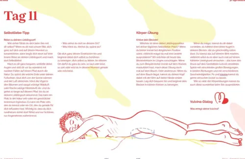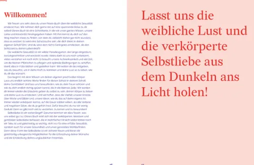 Die erfahrenen Sexual-und Körpertherapeutinnen Mara Stadick und Vivien Schlitter nehmen ihre Leser*innen mit auf eine sinnliche Reise und zeigen gemeinsam mit der Grafikdesignerin Natalia Alicja Dziwisch, wie sie sich in 30 Tagen voller Selbstliebe der eigenen Lust nähern können. Die Expertinnen teilen ihr Wissen über die Anatomie der weiblichen Genitalien, sprechen über verschiedene Formen der Erregung und geben praktische Selbstliebe-Tipps sowie Beispiele für Körperübungen, die durch stilvolle Illustrationen visualisiert werden.