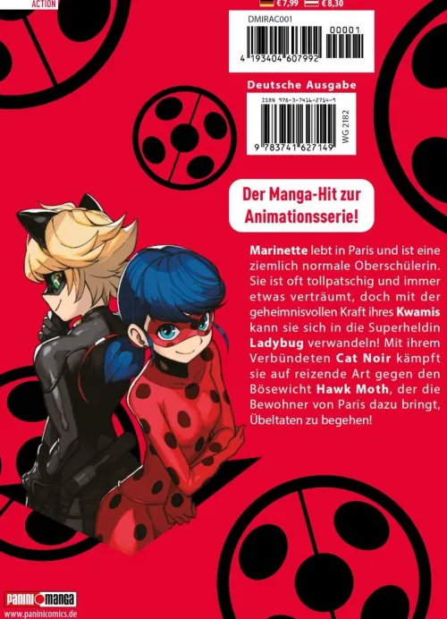 Der Manga-Hit zur Animationsserie! Marinette lebt in Paris und ist eine ziemlich normale Oberschülerin. Sie ist oft tollpatschig und immer etwas verträumt, doch mit der geheimnisvollen Kraft ihres Kwamis kann sie sich in die Superheldin Ladybug verwandeln! Mit ihrem Verbündeten Cat Noir kämpft sie auf reizende Art gegen den Bösewicht Hawk Moth, der die Bewohner von Paris dazu bringt, Übeltaten zu begehen!