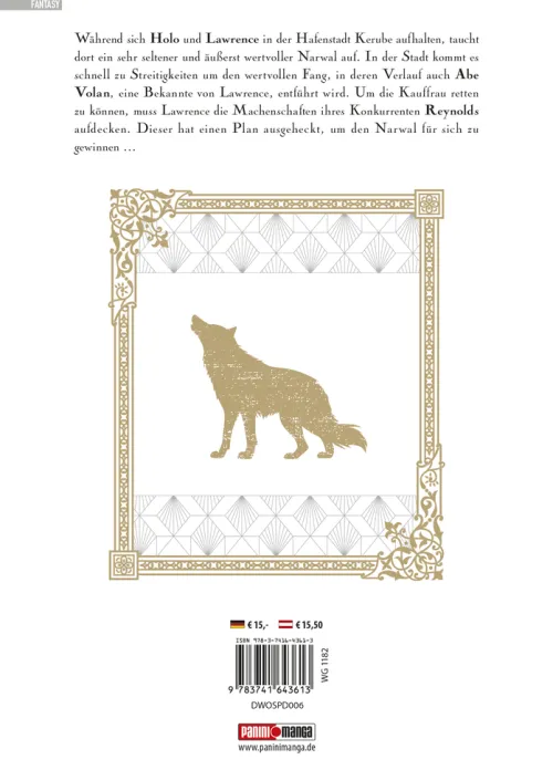 Während sich Holo und Lawrence in der Hafenstadt Gerube aufhalten, wird dort ein sehr seltener und äußerst wertvoller Einhornwal angelandet. Zwischen dem Nord- und Südtei lder Stadt kommt es zu Streitigkeiten um den wertvollen Fang, in deren Verlauf auch Abe Volan, eine Bekannte von Lawrence, entführt wird. Um die Kauffrau retten zu können, muss Lawrence die Machenschaften ihres Konkurrenten Reynolds aufdecken. Dieser hat einen Plan ausgeheckt, um den Einhornwal für sich zu gewinnen