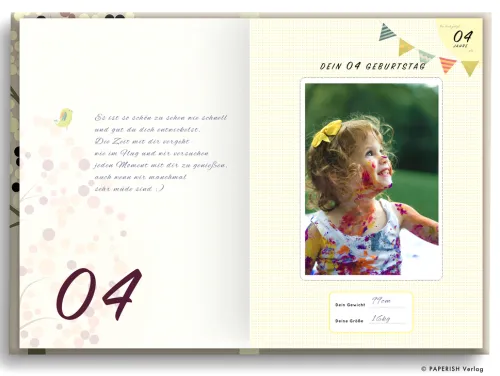 Ein wundervolles Erinnerungsalbum, bei dem Eltern und Familie über 18 Jahre alle Momente und Erlebnisse auf besondere Art und Weise festhalten können. Mit der Geburt beginnend enthält dieses einzigartige Album für jedes Jahr liebevoll gestaltete Seiten zum Eintragen, Einkleben und Selbstgestalten. Damit das Album auch lange Freude bereitet, sind die Seiten besonders stabil und der Einband des Buches fest und folienkaschiert. Und für das gewisse Etwas gibt es eine wunderschöne Goldfolienprägung auf dem Cover des Buches, so kann jeder erkennen dass es sich um ein einzigartiges, persönliches Erinnerungsstück handelt. Einmal ausgefüllt ist dieses Erinnerungsbuch ein für immer verbindendes Band zwischen Eltern und Kind.