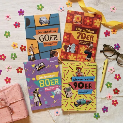 Flower-Power, Beatles-Musik und Mondlandung – die 1960er waren eine wilde Zeit! Dieser Rätselblock im Retro-Design sorgt dafür, dass Erinnerungen wach werden. Rätsel dich mit Klassikern wie Sudoku und Kreuzworträtseln, aber auch mit kreativen Bildrätseln und Quizfragen, zurück in deine Kindheit und Jugendzeit. Egal, ob als Geburtstagsgeschenk oder als Mitbringsel zur Mottoparty, die farbenfrohen Rätsel mit historischen Fotos sorgen garantiert für gute Unterhaltung und sind sowohl alleine als auch mit Freund*innen und Familie spielbar. Dabei ist der „Weißt du noch“-Effekt garantiert!