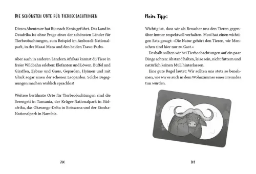Rio hat eine super Idee: Für ein Schulreferat über Pandas will er mit dem Hotel Fernweh zu den schwarz-weißen Bären nach China reisen. Doch der Plan geht gehörig schief . . . Stattdessen landet er mit Nelly, Anna und Ben mitten in Kenia. In der afrikanischen Savanne treffen sie auf Löwen und Elefanten, Giraffen und Zebras und staunen über die Schönheit der Natur. Nur die Suche nach Phil A. Delphias magischem Gegenstand ist diesmal ziemlich schwierig. Bis sie einen besonderen Ort finden, an dem irgendetwas seltsam ist . . .