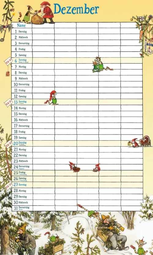 Der Klassiker mit den Original-Illustrationen von Sven Nordqvist. Wenn es nach dem kleinen Kater ginge, stünde auf jedem Kalendertag: „Findus Geburtstag“! Mit diesem reich illustrierten Familienkalender macht das Planen gleich noch mehr Spaß. Die Illustrationen aus den Bilderbüchern rund um Pettersson und Findus begeistern Groß und Klein und machen die Alltagsorganisation ein bisschen hyggeliger.