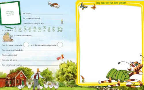 Zusammen mit Pettersson und Findus werden in diesem Buch die schönen Erinnerungen an die Kindergartenzeit und an die ersten Freunde gesammelt. Das Album hat viel Platz für alle Freunde zum Eintragen, Ausmalen und Einkleben. Zusätzlich gibt es mehrere Seiten für einen Geburtstagskalender und eine Fotogalerie.