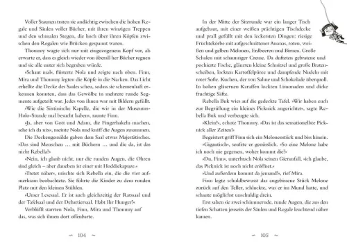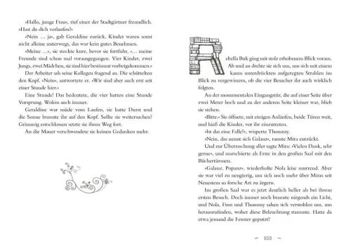 Die Buks, das sind Buchschutzgeister, die versteckt in einer alten Villa leben. Ihre Aufgabe ist es, die Bücher ihrer Bibliothek zu bewahren, die es in der normalen Welt nicht mehr gibt. Allerdings sind die verbliebenen Bücher in großer Gefahr, sie sind von einer scheinbar unheilbaren Krankheit befallen. Als das Verrückte Orakel prophezeit, dass Menschenkinder die Rettung bringen werden, staunen die Buks nicht schlecht. Und tatsächlich tauchen Finn, Nola, Mira und Thommy in der magischen Bibliothek auf und bringen das geordnete Leben der Buks ordentlich durcheinander.