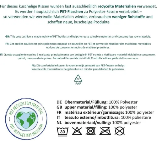 Der Geschenkartikel mit dem niedlichen Motivdruck und dem Spruch „Herzensmensch“ eigent sich wunderbar als Überraschung zum Valentinstag. 25 cm x 25 cm, Wendemotiv. Material: Hülle&Füllung: receyceltes Polyester.