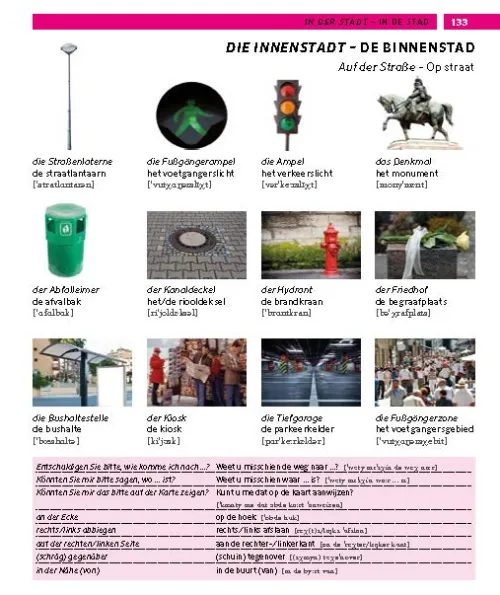 - Mit den wichtigsten Themen wie Reise, Essen und Trinken, Einkaufen, Arbeit, Schule und Freizeit.