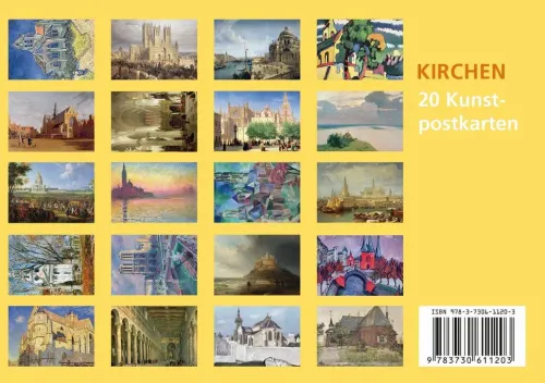 Kirchenbauten sind Manifestationen des Glaubens und beeindruckende kulturelle Zeugnisse. Sie prägen das Bild unserer Städte, Dörfer und Landschaften bis heute und sind Ausdruck der architektonischen und bautechnischen Möglichkeiten ihrer Entstehungszeit sowie des künstlerischen Vermögens ihrer Urheber. Künstler aller Epochen haben sie als Symbol der Ewigkeit oder der Vergänglichkeit mal ideell überhöht, mal romantisch verklärt. Von Canaletto bis Turner sind 20 der schönsten Werke der bildenden Kunst in diesem Postkarten-Set versammelt.